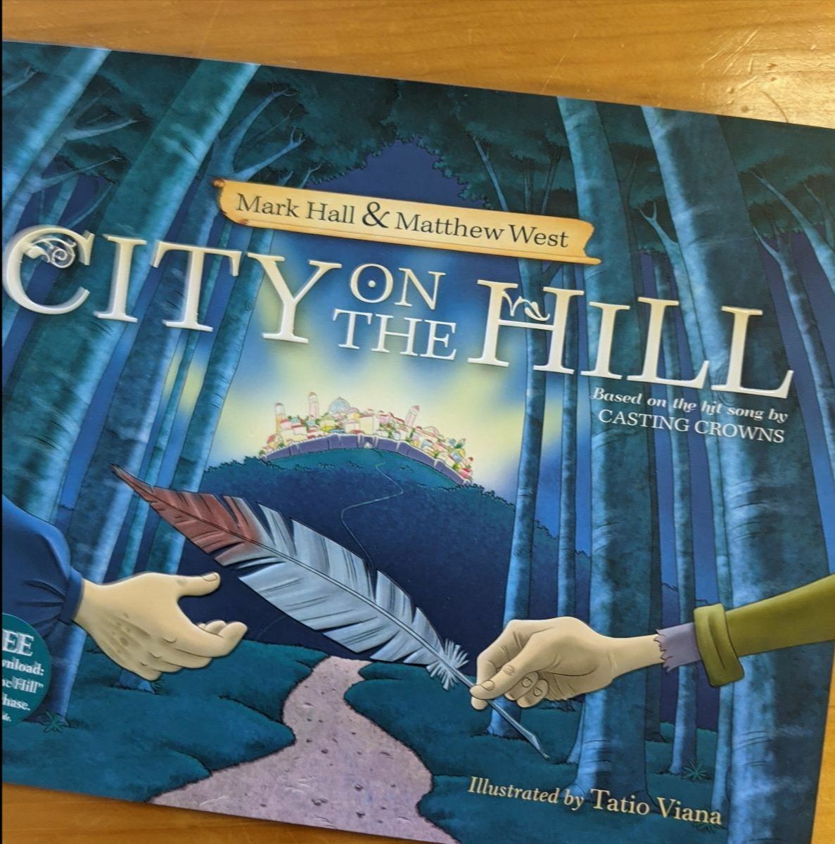 City on the Hill is a 32-page hardbound picture book written by Mark Hall and Matthew West. It's based on the popular song of the same name by Casting Crowns. Beautiful illustrations and rhyming verses help teach how the church is depicted as the body of Christ in I Corinthians 12.This list price for this title is $16.99; our sale price is $11.00, which includes media mail shipping in the continental US.